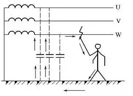 单相触电是指当人站在地面上人体的某一部位触到某相火线而发生的触电现象。在低压供电系统中发生单相触电,人体所承受的电压几乎就是电源的相电压220V。