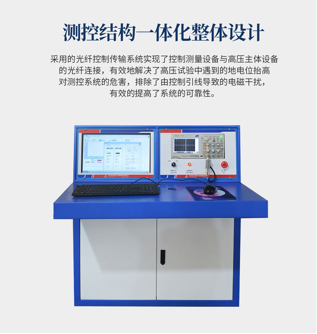 4、采用的光纤控制传输系统在国内高压试验设备中是创新,它实现了控制测量设备与高压主体设备的光纤连接,有效地解决了高压试验中遇到的地电位抬高对测控系统的危害,排除了由控制引线导致的电磁干扰,极大地提高了系统的可靠性。