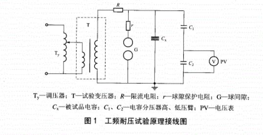 交流耐压试验的接线,应按被试品的电压、容量和现场实际试验设备条件来决定。通常试验变压器是成套设备。图1是一种典型的试验接线。