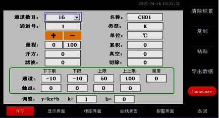调整:对通道值的修正调整,使其显示理想的数值。通过调整k值来调整温度的倍数(乘除),调整b值可以调整数值的正负值的大小。