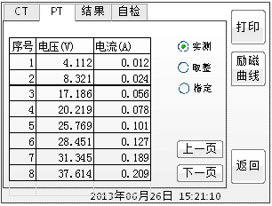 2)取整:智能互感器测试仪对实测的励磁数据按电流取整后的结果显示,10mA以下按1mA递增、10mA~100mA以上按5mA递增、100mA以上按0.1A递增,取整的结果便于数据记录、比对;