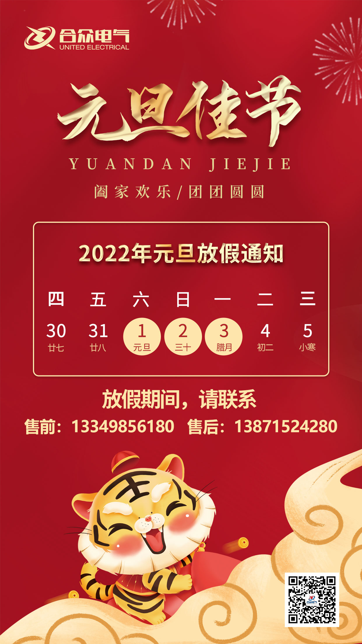 合众电气2022年元旦福利发放与放假通知