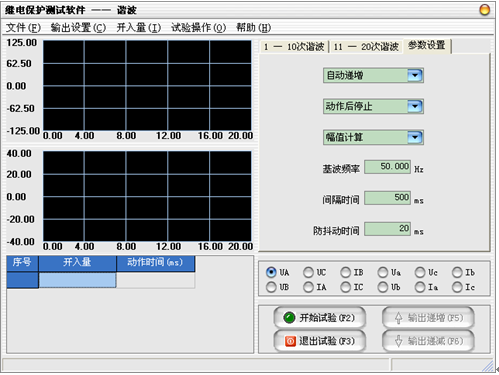 微机继电?;げ馐砸欠导扑悖焊鞯缪?、电流的各次谐波在界面上以“伏特”或“安培”为单位显示其值,测试仪输出的值为界面上实际显示的电压电流大小。
