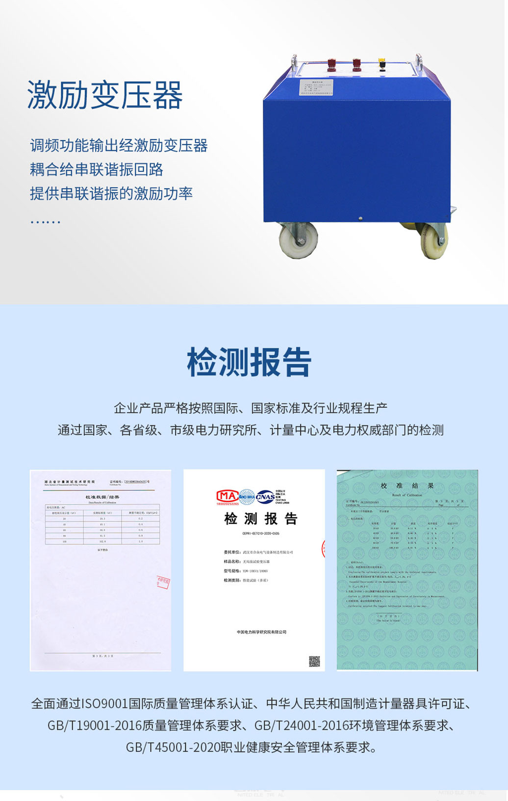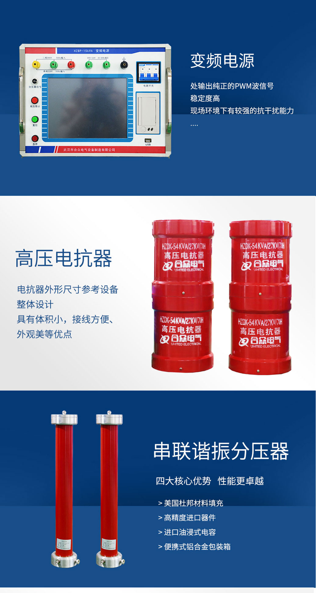 *该装置主要由变频控制电源、激励变压器、电抗器、电容分压器、补偿电容器(选配)组成。