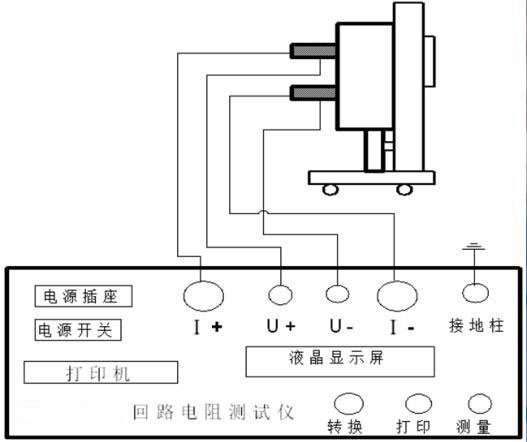 1)回路电阻测试仪两个电压夹分别夹在一相上、下触头,两个电流夹分别夹在电压夹外侧,且两夹子不能相碰 (电压夹,电流夹同极性);