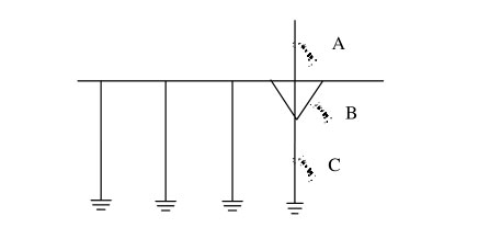 在某些接地系统中,如下图所示,应选择一个正确的测量点进行测量,否则会得到不同的测量结果。