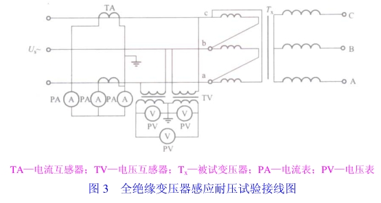 为考核全绝缘变压器的纵绝缘、分级绝缘变压器的主绝缘和纵绝缘,应按 GB1094.32003 规定的程序进行短时感应耐压试验 (ACSD)或长时感应耐压试验 (ACLD)串级式电压互感器的感应耐压试验可参照进行。