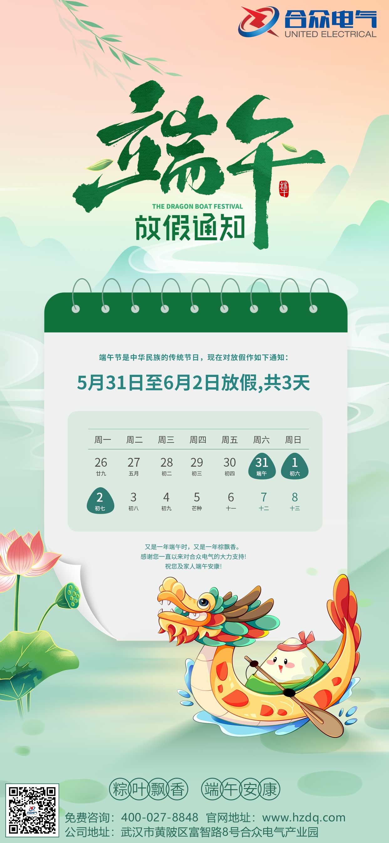 一年一端午,一岁一安康。端午节即将来临,根据《国务院办公厅关于2025 年部分节假日安排的通知》,结合我公司实际情况,现将端节放假安排的有关事宜通知如下:
